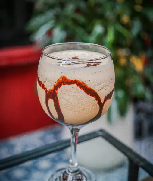 Café frío con topping de chocolate.